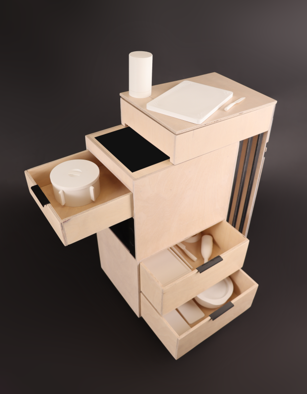 Beim Vegan-Starter handelt es sich um eine Kompakt-Küche, welche die Einbauküche komplett ersetzen soll und somit Platz und Kosten spart. Die Transportbox des Vegan-Starters beinhaltet vier verschiedene Module, die den gesamten Kochprozess abdecken: das Vorbereitungs-, Koch-, Back- und Zusatzmodul. Beim Kauf sind das Vorbereitungs- und Kochmodul bereits mitinbegriffen, der Rest kann nachträglich erworben werden.